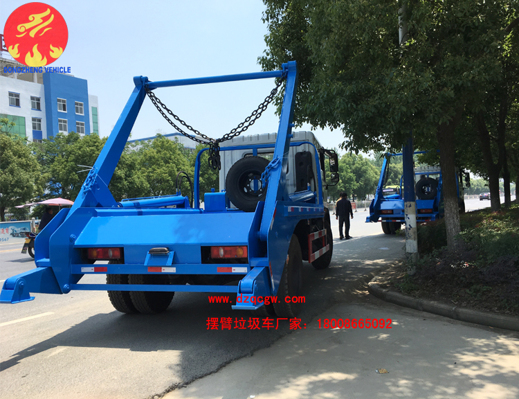本公司所生产的摆臂垃圾车均采用正宗底盘,可全国联保,加装统一配套液压举升总成,通过左右两臂装运全国统一摆臂式垃圾斗,可一车多斗,带自卸功能,达到安全稳定,性能可靠。垃圾斗厢体分为按摆臂式和地坑地面两用式配置不同形式的垃圾斗。主要是运载生活垃圾,亦可运输灰,砂,石,土等散装建筑材料,也可以在矿山或煤建中送矿石或煤。摆臂式垃圾车垃圾箱可做成密封式、半密封式,形状可做成长方形、梯形。
